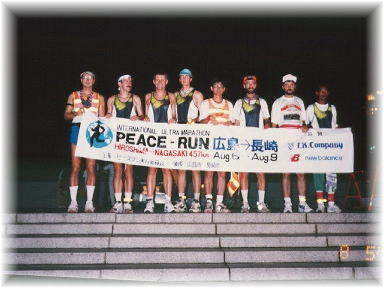 私達は、広島から長崎まで平和 を祈りながら、愛について考えながら4日間走り続けたいと思います。450kmを 一人の足で、しかも、真夏の炎天下、決められた時間内に走り通すことは簡単なこ とではありません。想像以上の苦痛を伴います。しかし、今、多くの人々が味わっ ている世界の苦しみから見れば些細なことにしか過ぎません。