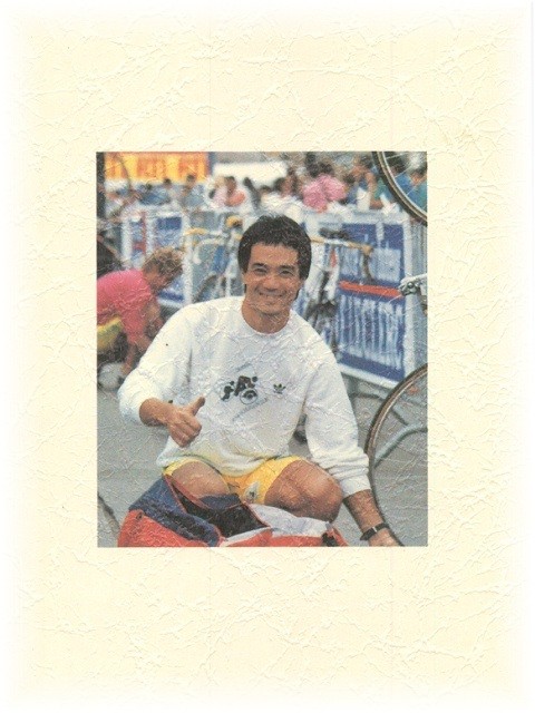 1987年に結成された岡山県トライアスロン協会主催の始めてのイベント「トライアスロンキャンプ」のレ−スディレクタ−を私がやっていた時、彼はトップでバイクを走っていました。そしておばあちゃんを撥ねたのです。おばあちゃんの入院先、津山へ、岡山から彼の車で通いました。